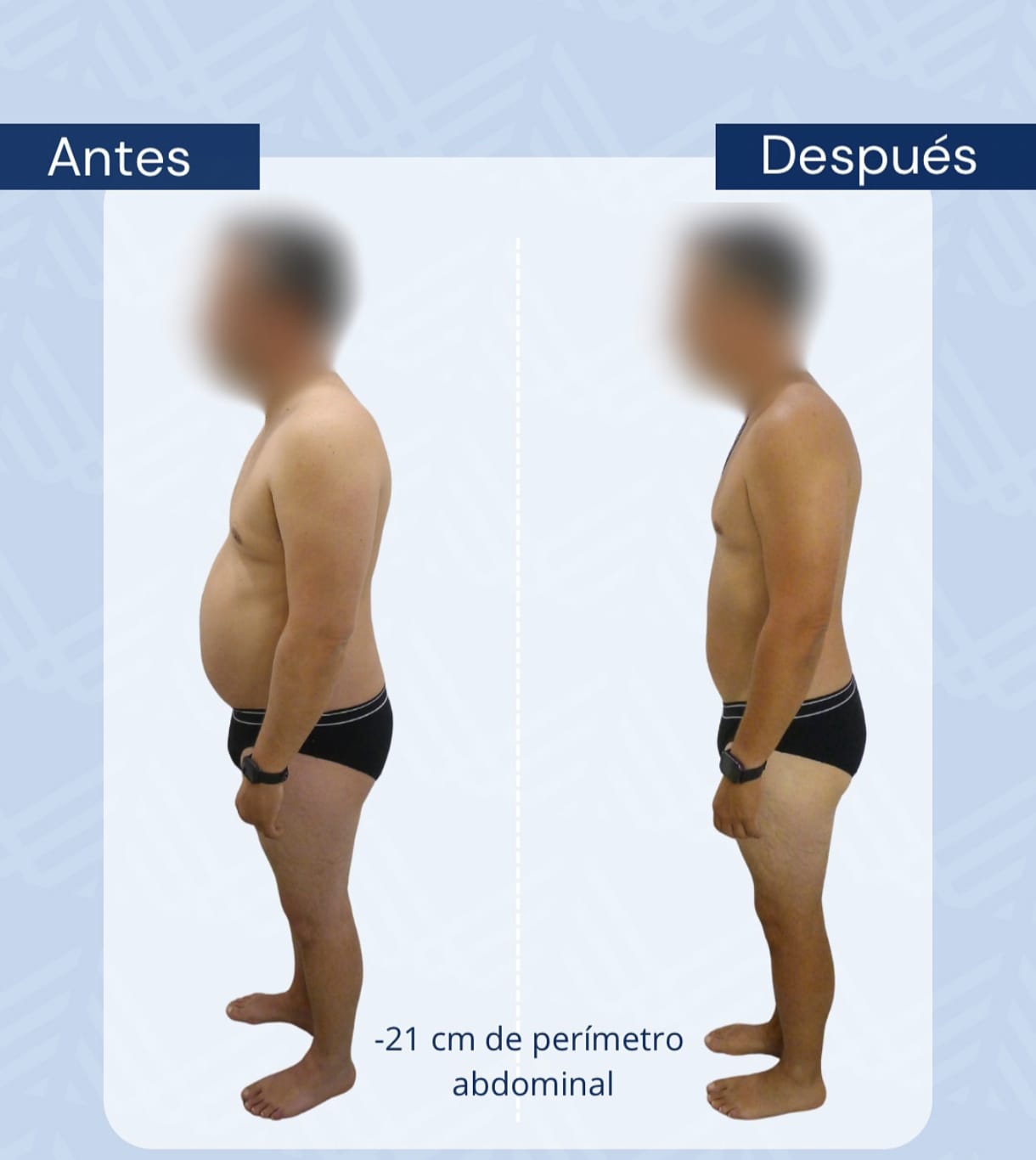 Consiguió una disminución de 16 kg de grasa, con una reducción de -21 cm de perímetro abdominal