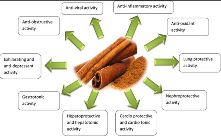 Figura 1. Beneficios de la canela. Fuente: Biomedicine & Pharmacotherapy, 2021.