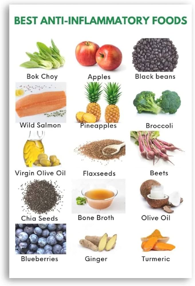 Dieta antiinflamatoria rica en vegetales, cúrcuma, jengibre y antioxidantes.
